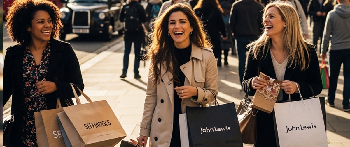 En af Londons mest kendte shoppingområder er Oxford Street, som strækker sig over mere end en kilometer og er hjemsted for mere end 300 butikker, herunder nogle af verdens største og mest kendte varehuse såsom Selfridges og Debenhams. Det er et populært sted for både lokale og turister, og der er altid en livlig atmosfære med et hav af mennesker, der shopper, spiser og drikker.